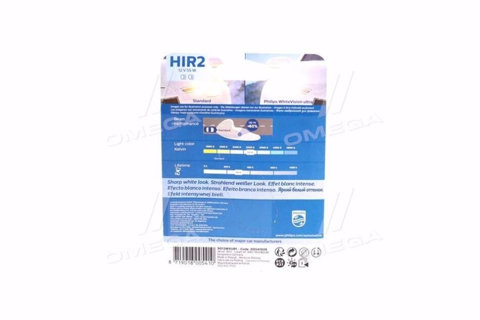HIR2 WhiteVision ultra +60% (3700K) B1 12V 55W PX22d PHILIPS 9012WVUB1