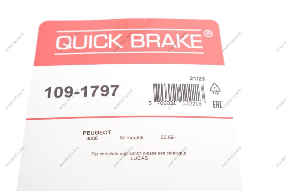 109-1797 QUICK BRAKE Планка супорта (заднього) прижимна (к-кт) Citroen C4 II/Peugeot 3008/5008 09- (