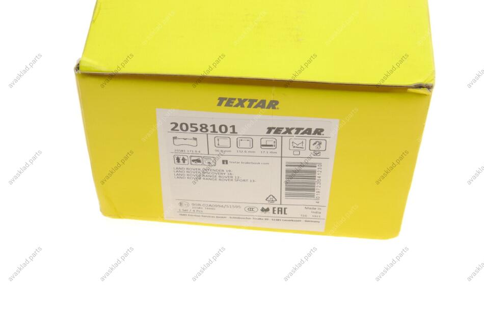 Замовлення та доставка TEXTAR, 2058101 TEXTAR Гальмівні колодки до дисків (lr138646, lr149626, lr157174):
