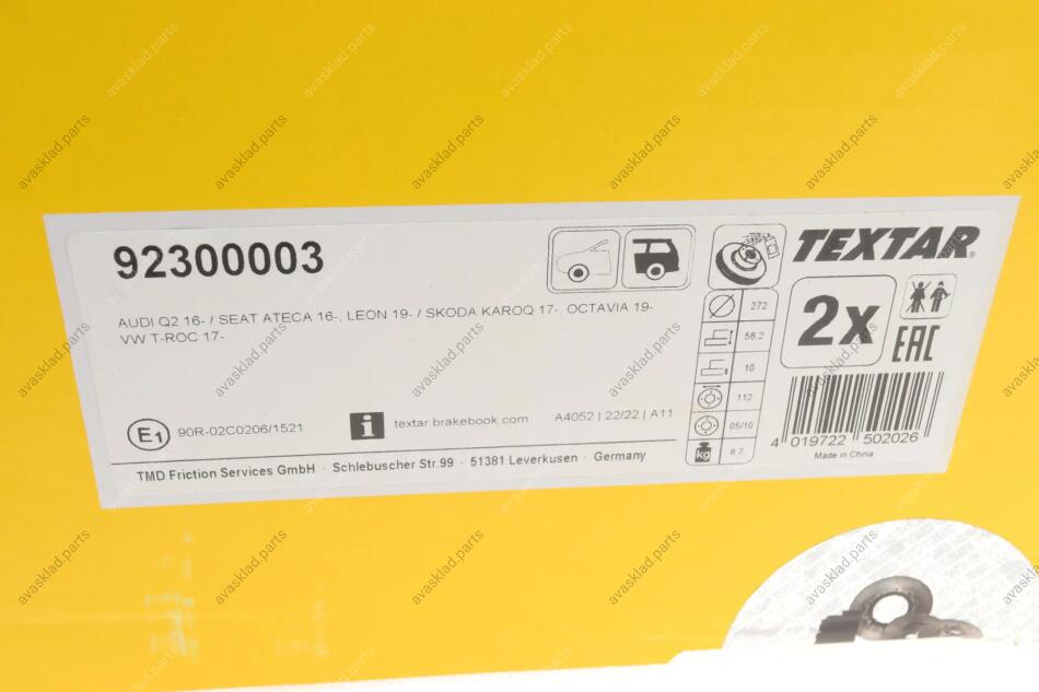 92300003 TEXTAR Диск гальмівний