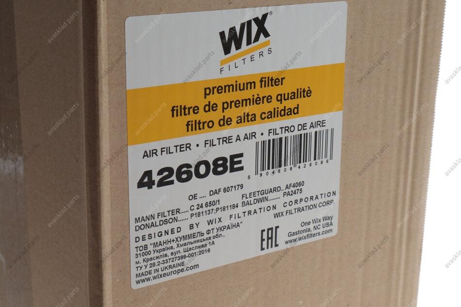 Замовити повітряний фільтр WIX FILTERS, 42608E ви можете на нашому сайті avasklad.parts. Швидка доставка по всій Україні.